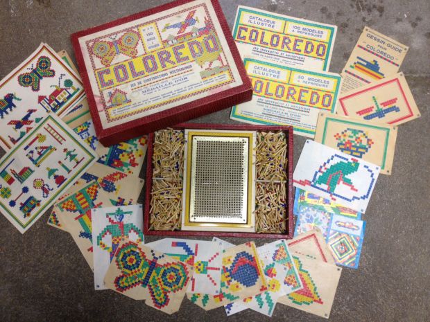 J’avais gardé le souvenir d’un jeu de création qui avait soulevé en moi un désir au moins aussi fort que celui de former des bulles de savon. De belles boîtes en carton coloré étaient rangées dans les petites armoires à notre taille de l’école maternelle. Nous avions le droit, certains après-midi, de les sortir de leurs étagères. J’avais été émerveillée par des allumettes géantes au bout desquelles le soufre était figuré par de petites boules de couleurs vives, le bleu, le jaune, le rouge et le vert. Le jeu consistait à les faire entrer dans les trous d’un support perforé de façon à reproduire ou à créer des figures colorées. Je ne sais si les allumettes craquées par mon père fumeur avaient allumé la flamme de mon engouement pour ce jeu. La malchance voulait que d’autres enfants plus rapides que moi s’en emparaient dès le début de l’après-midi récréatif et je passais le reste du temps à espérer le moment où je pourrais à mon tour m’en saisir. Je ne m’intéressais plus aux autres jeux. Les petites boules brillantes aimantaient mon regard. Je leur associais, il me semble, une impression de richesse. J’aurais voulu les thésauriser, les avoir pour moi seule. L’unique fois (telle est la conviction de ma mémoire !) où j’ai pu en disposer à loisir (mais le temps m’avait paru trop court), la manipulation de ces allumettes m’avait remplie de bonheur. Je découvrais en moi des pans insoupçonnés d’intelligence et de créativité. J’inventais le codage d’un nouveau langage qui était mien. Je créais de jolies formes géométriques ou des alignements de signes qui ne parlaient sans doute qu’à moi, mais dans l’enceinte de l’école, leur sens me dépassait. J’utilisais un matériel commun pour construire ma singularité.